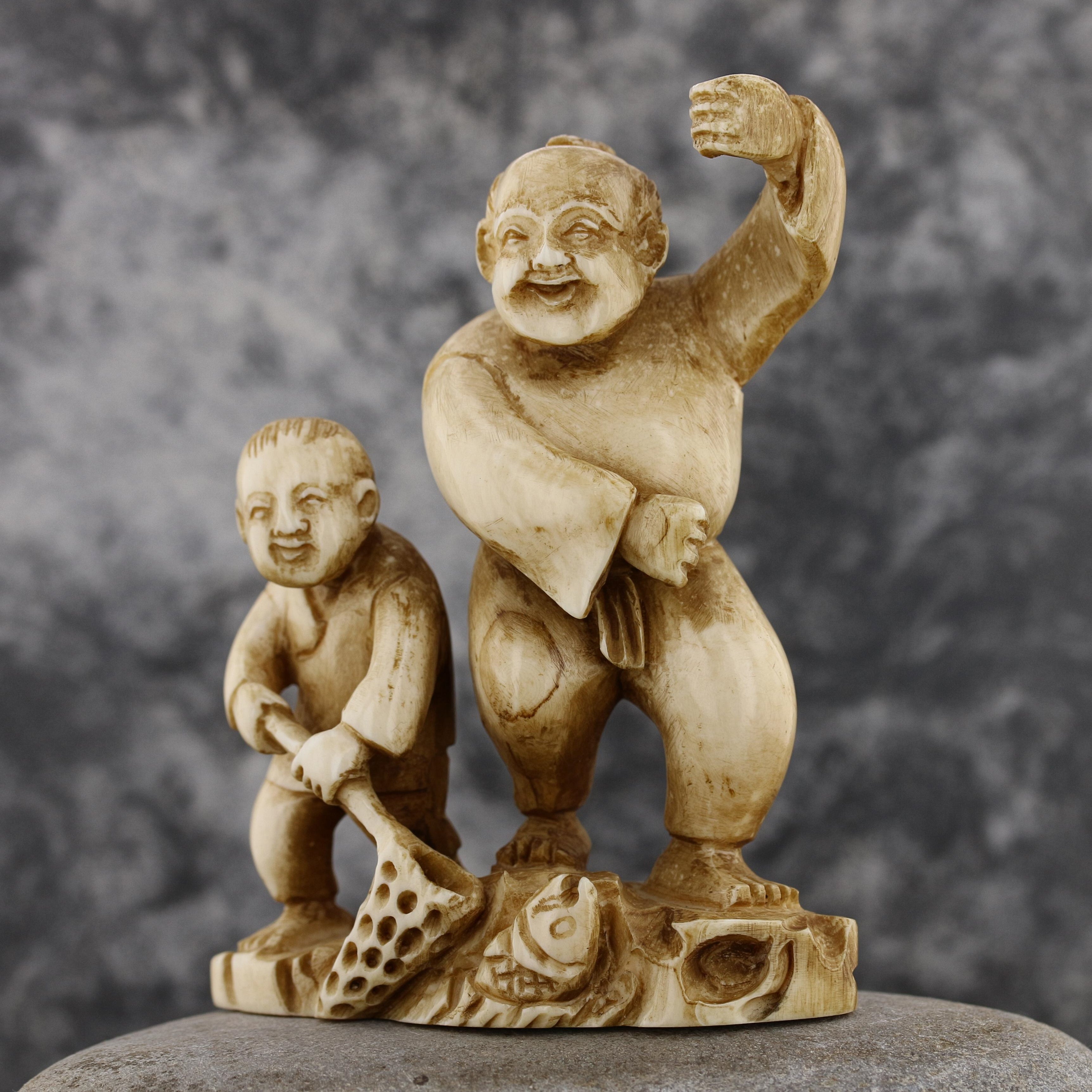 Yes. One side features a high-relief dragon, and the reverse side has a bamboo engraving.