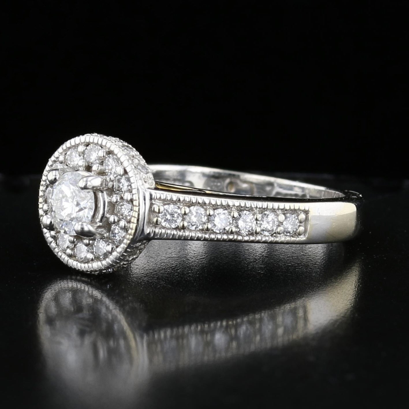 14K White Gold Diamond Ring .98ct Center Stone