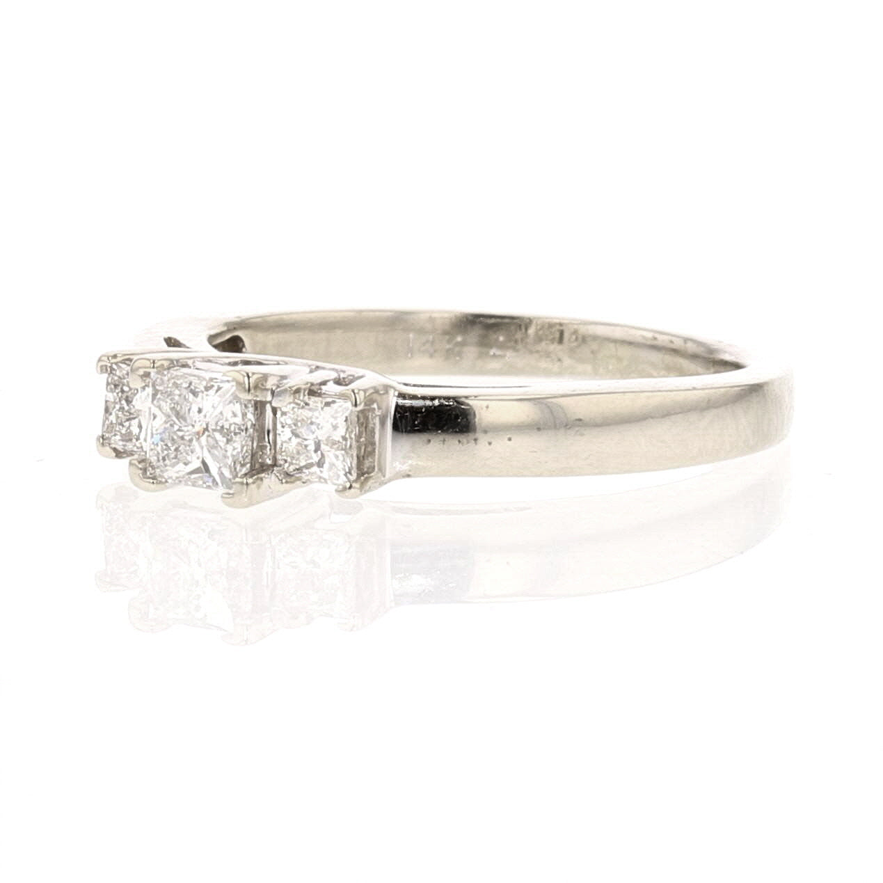 14K White Gold 3 Stone Princess Cut Diamond Engagement/Bridal Ring