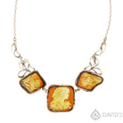 Description: This stunning necklace features three pieces of Baltic amber with beautiful intaglio carvings, including a central carving of a young lady's face and two side carvings of flowers. The amber is expertly carved in the back to showcase its clarity and is set in a custom-made sterling silver necklace. This is a true work of art, combining the skills of a master carver and a silver smith.