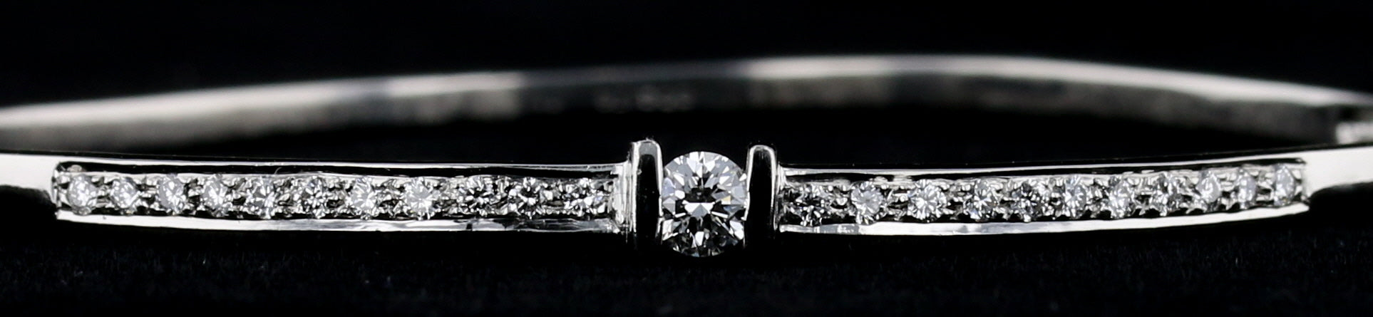 The bracelet contains approximately 0.64 total carats of natural diamonds, including a 0.20 carat round brilliant center diamond and channel-set accent diamonds.