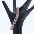 A dazzling pink sapphire bracelet with a vintage flair! Crafted in 14K yellow gold, this 7-inch beauty showcases 9.65ct of vibrant pink sapphires, elegantly complemented by 0.7ct of sparkling diamonds. A luxurious and timeless statement piece.