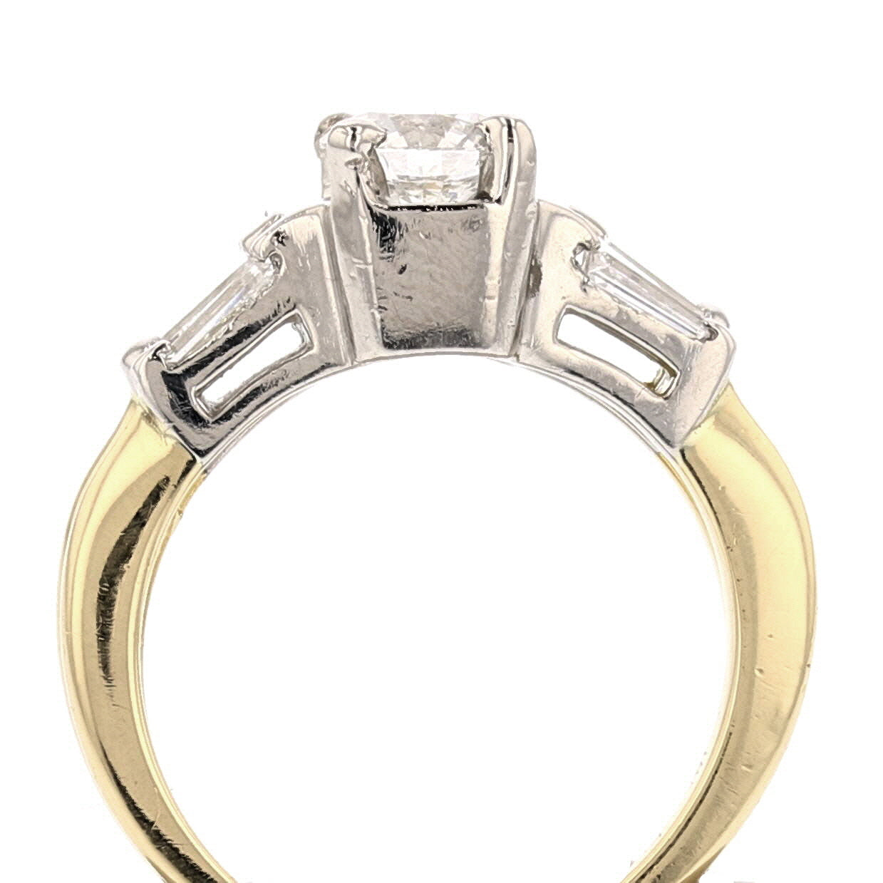 Timeless 18K Gold Round Diamond and Rectangular Side Stone Ring