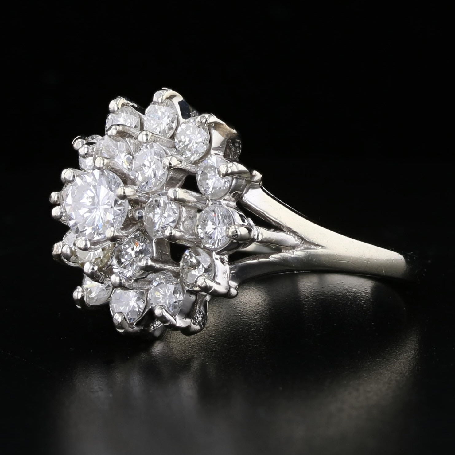 Vintage 14K White Gold 1.98ct Diamond Cluster Ring