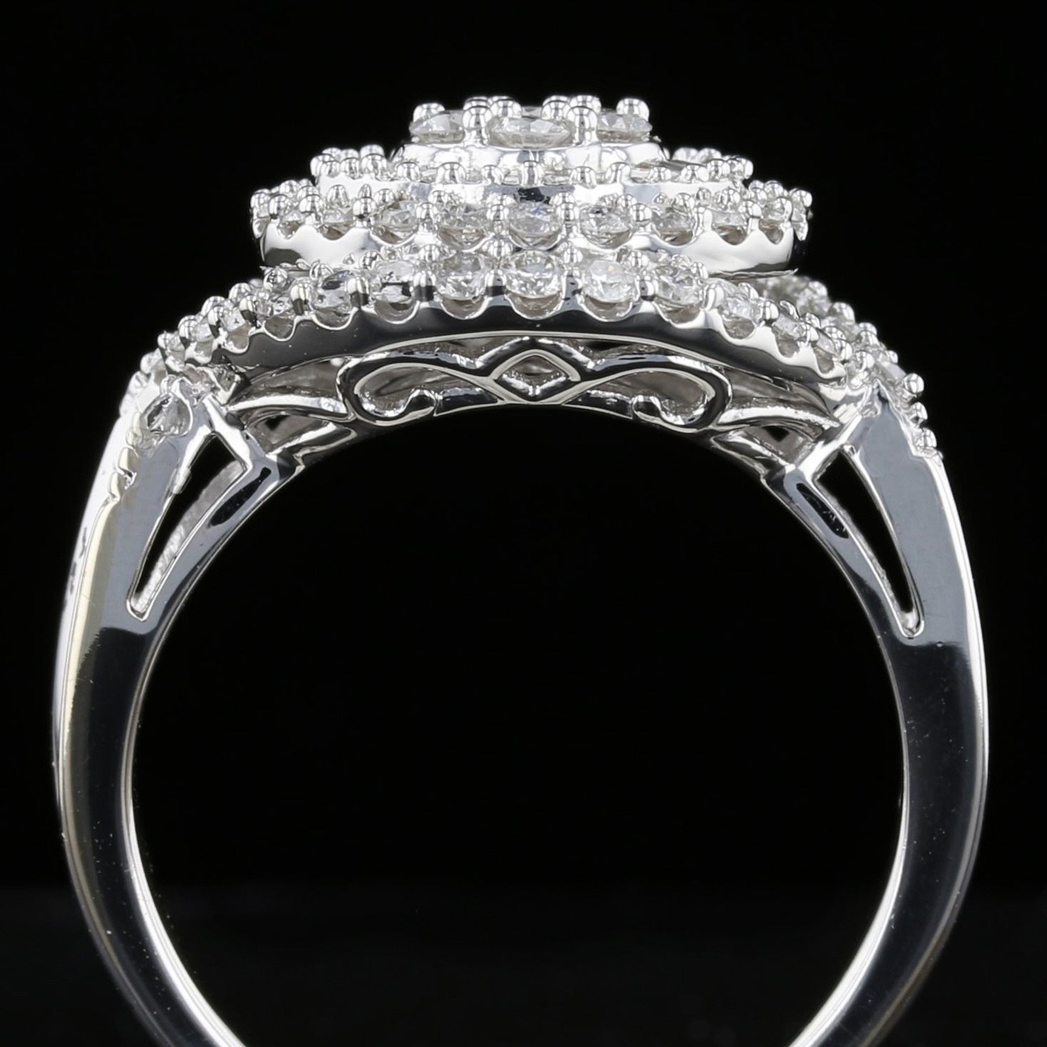 This Vintage Diamond Halo Ring in 14K White Gold is an exquisite piece that dazzles with sophistication. Featuring a luxurious halo of 95 diamonds, including 65 round-cut diamonds (1.62ct) and 30 baguette-cut diamonds (1.2ct), this ring sparkles from every angle. The round and baguette diamonds are beautifully arranged in a floral-inspired halo design, adding depth and dimension to this vintage treasure. With a total weight of 6 grams, this ring is perfect for special occasions or as a timeless addition to any jewelry collection.