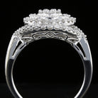 - Design: Floral-inspired halo with mixed round and baguette diamonds