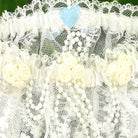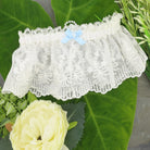 Enhance your wedding ensemble with our meticulously crafted Stunning Embroidered Tulle Lace Bridal Garter. Made with exquisite attention to detail, this garter adds timeless elegance to any bridal or wedding attire. The ivory embroidered tulle lace features a Victorian 'Lovers Knot' design, adorned with pearl strings and pearl hearts for a touch of sophistication. The delicate blue bow on the back seam adds a subtle pop of color. This garter set includes both a keepsake and a toss garter, ensuring you can treasure a memento while celebrating your special day. Handmade in England by skilled artisans, this garter reflects the exceptional craftsmanship associated with English artistry. Measuring approximately 2.5" wide and 4" deep, it offers a comfortable fit, accommodating a range of sizes.