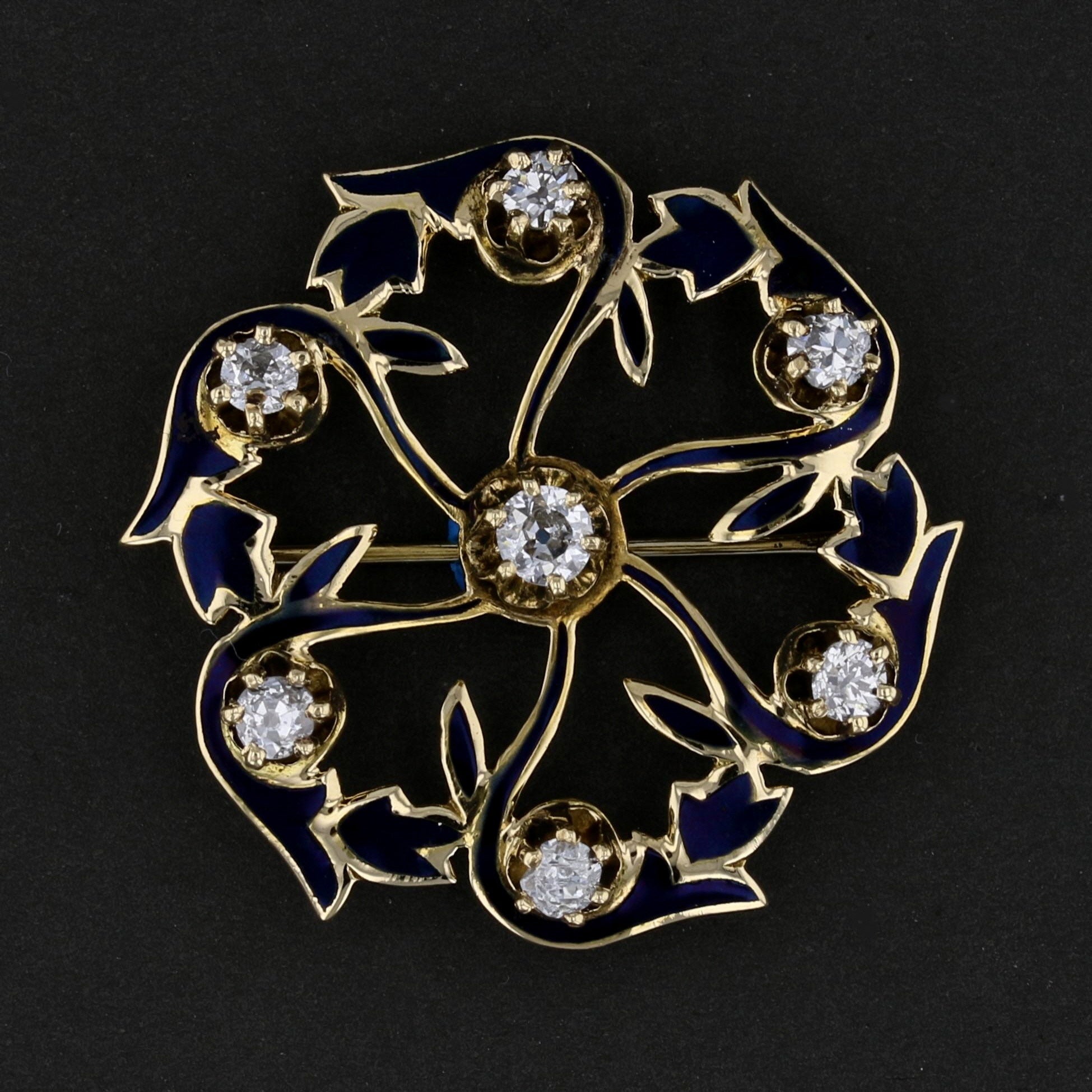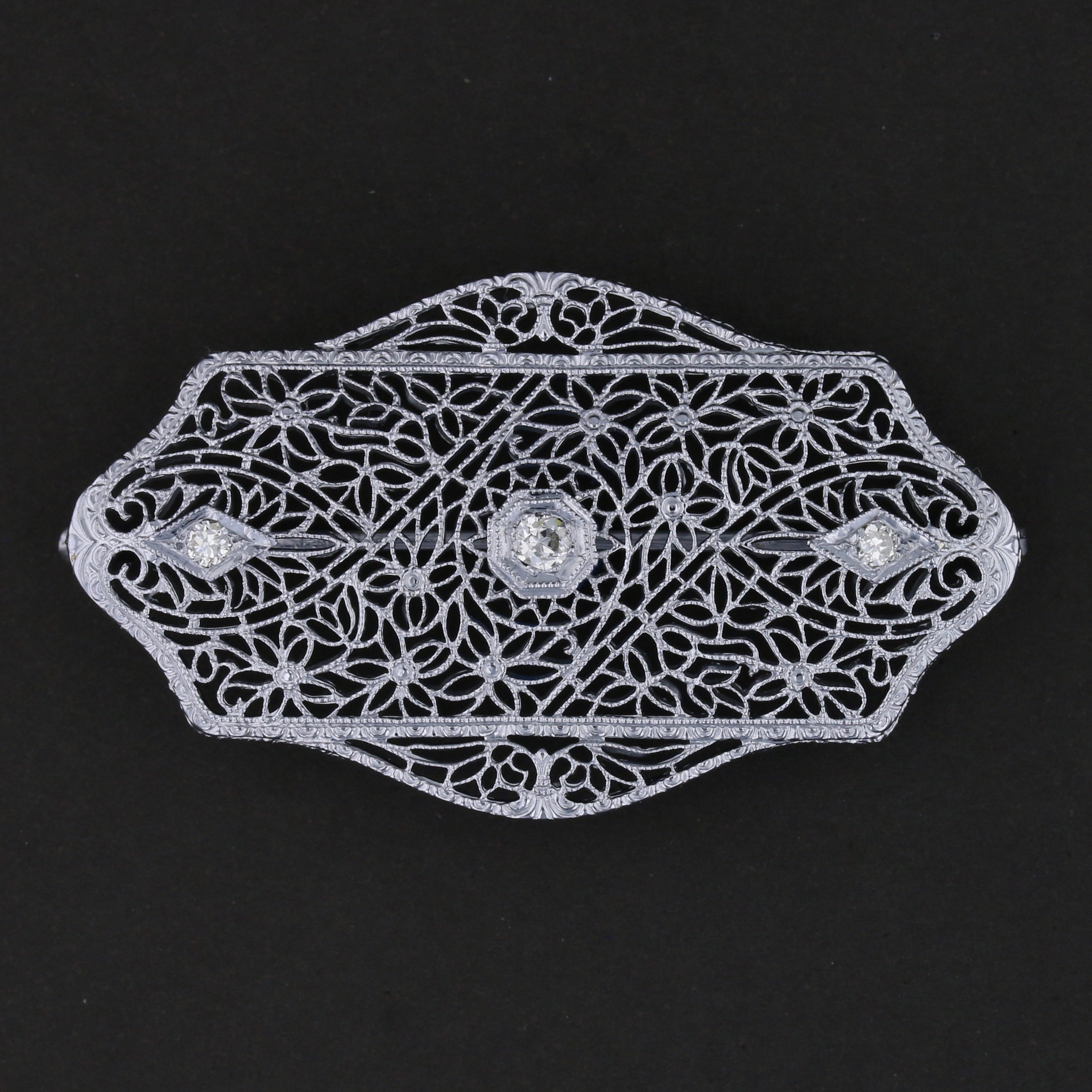 Vintage Black Enamel & Diamond Brooch