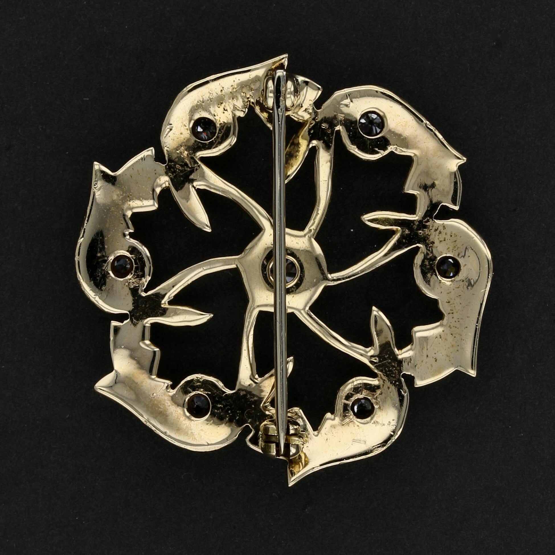 Vintage Black Enamel & Diamond Brooch