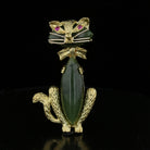Nephrite Jade Ruby BroochVintage10.3gr, 18K, Yellow, Jade, Marquise, Green, , Number of Stones: 2, Total Weight: ct, , Ruby, Round, red, 2, Number of Stones: 2, Total Weight: 0.04ct, , , , , , Total Weight: ct, , , ,