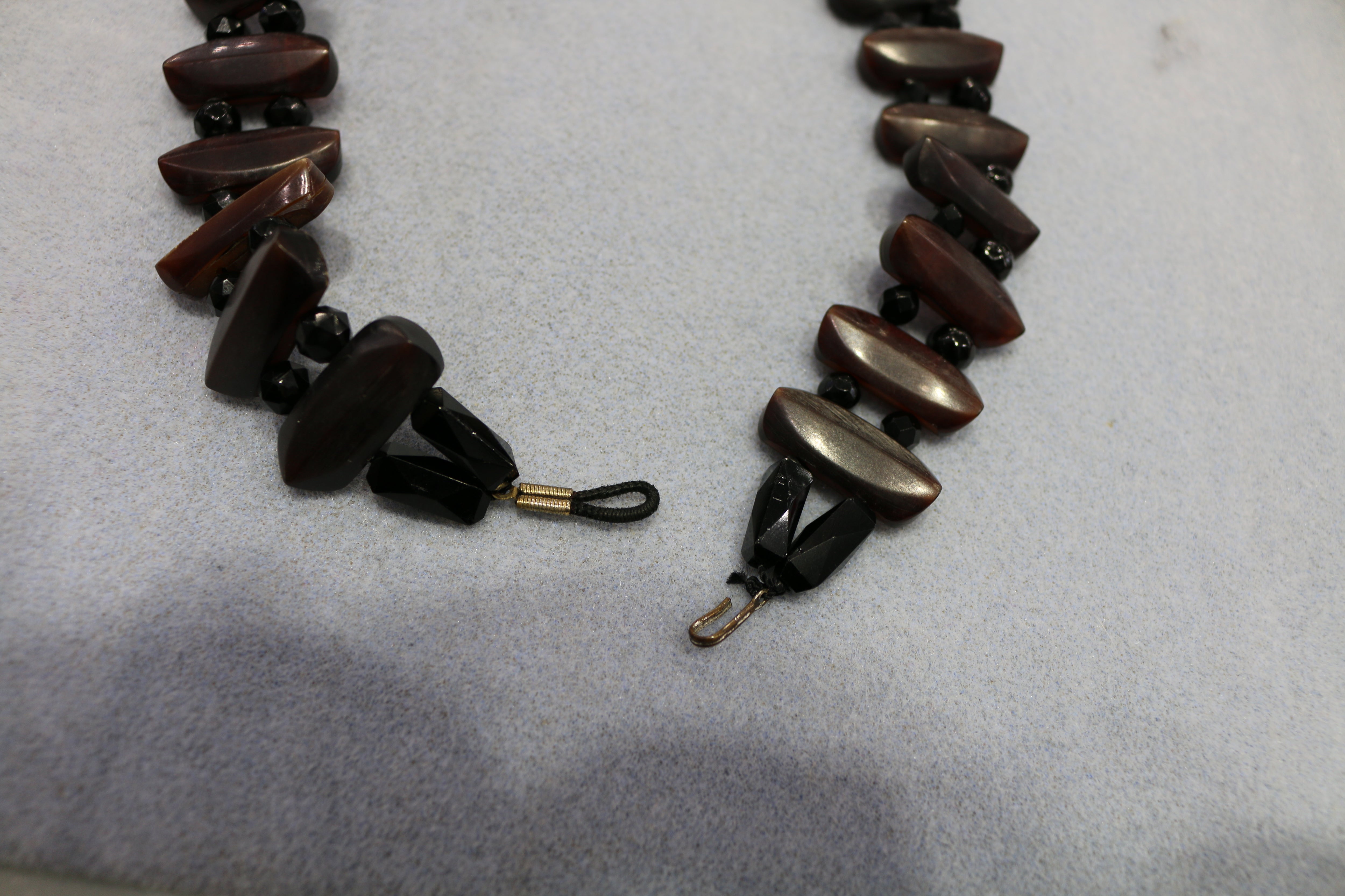 Antique Gutta Percha & Whitby Jet Cameo, French Jet Beads Necklace