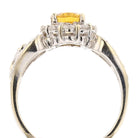 White gold citrine ring with 0.60ct oval gemstone and diamond halo. Elegant heart-accented band. Size 6.5. Total weight: 5.4g. Item 891436.