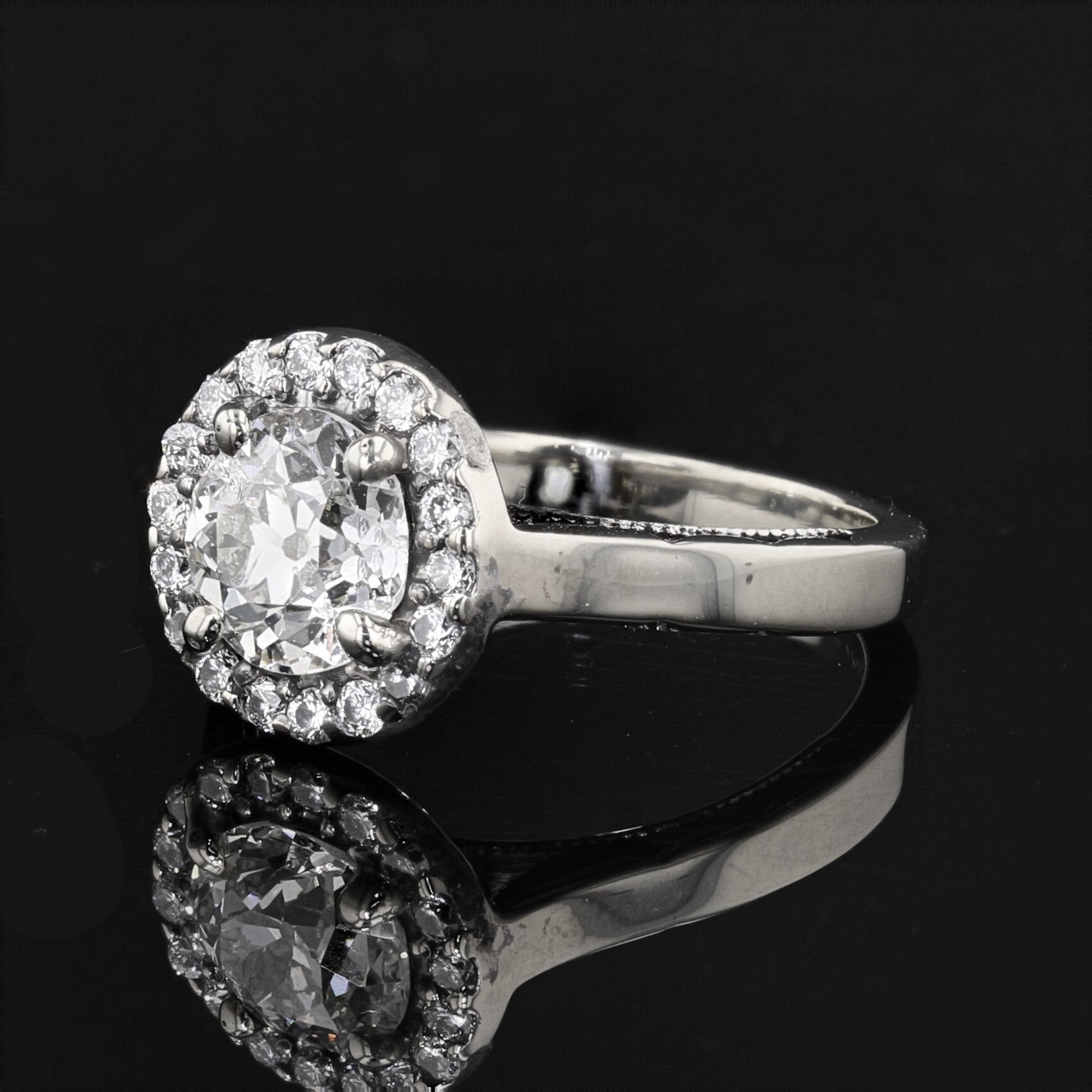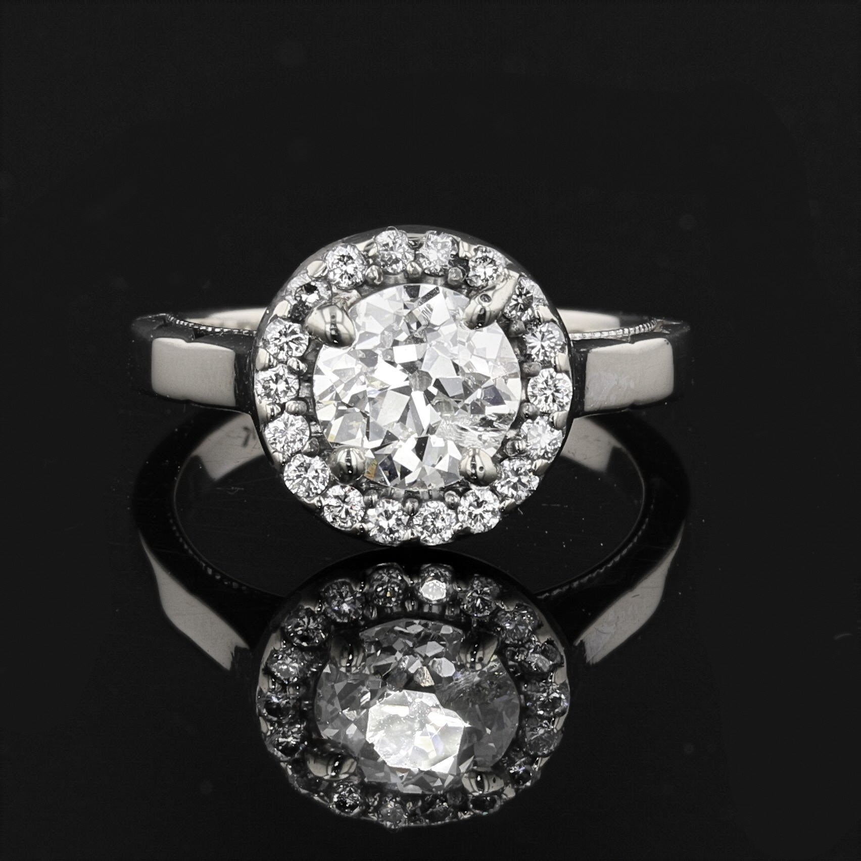 Antique 18K White Gold, Round Cut, 1.1ct Center Diamond