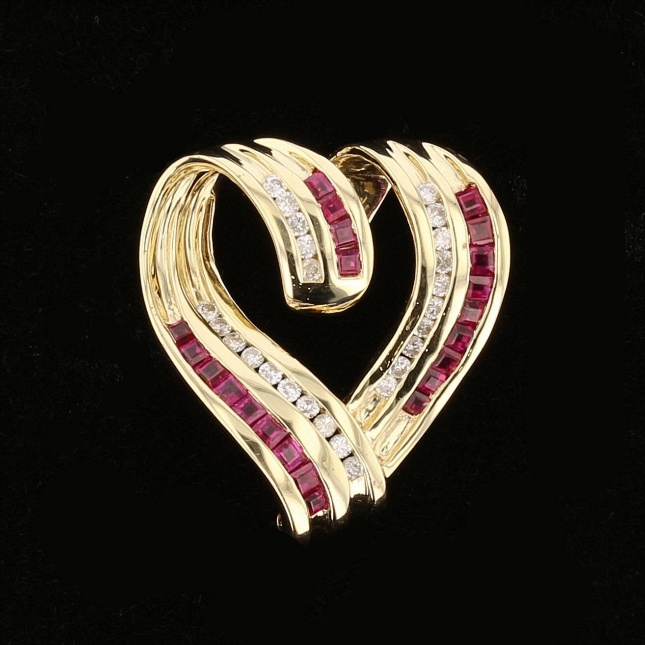 Radiant Diamond & Ruby Heart Gold Pendant