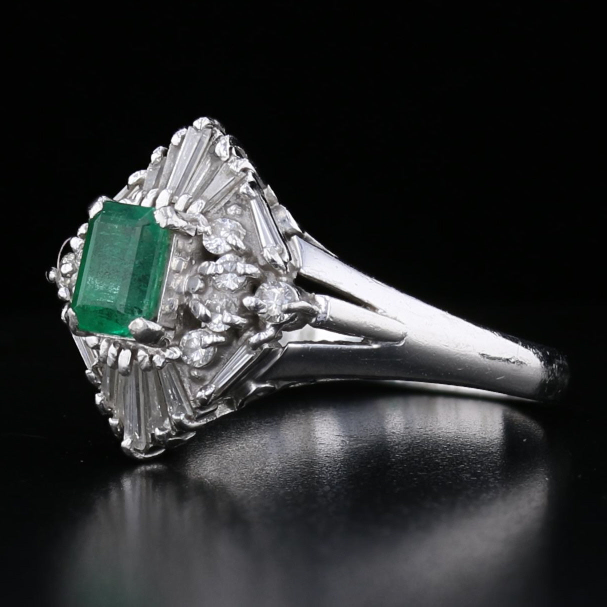 Vintage Platinum Emerald and Diamond Ring