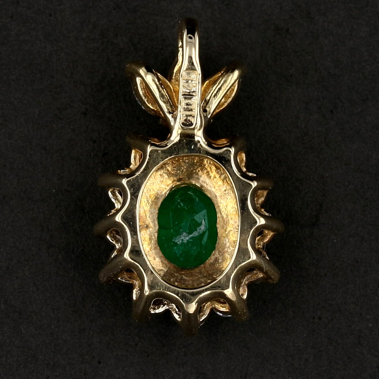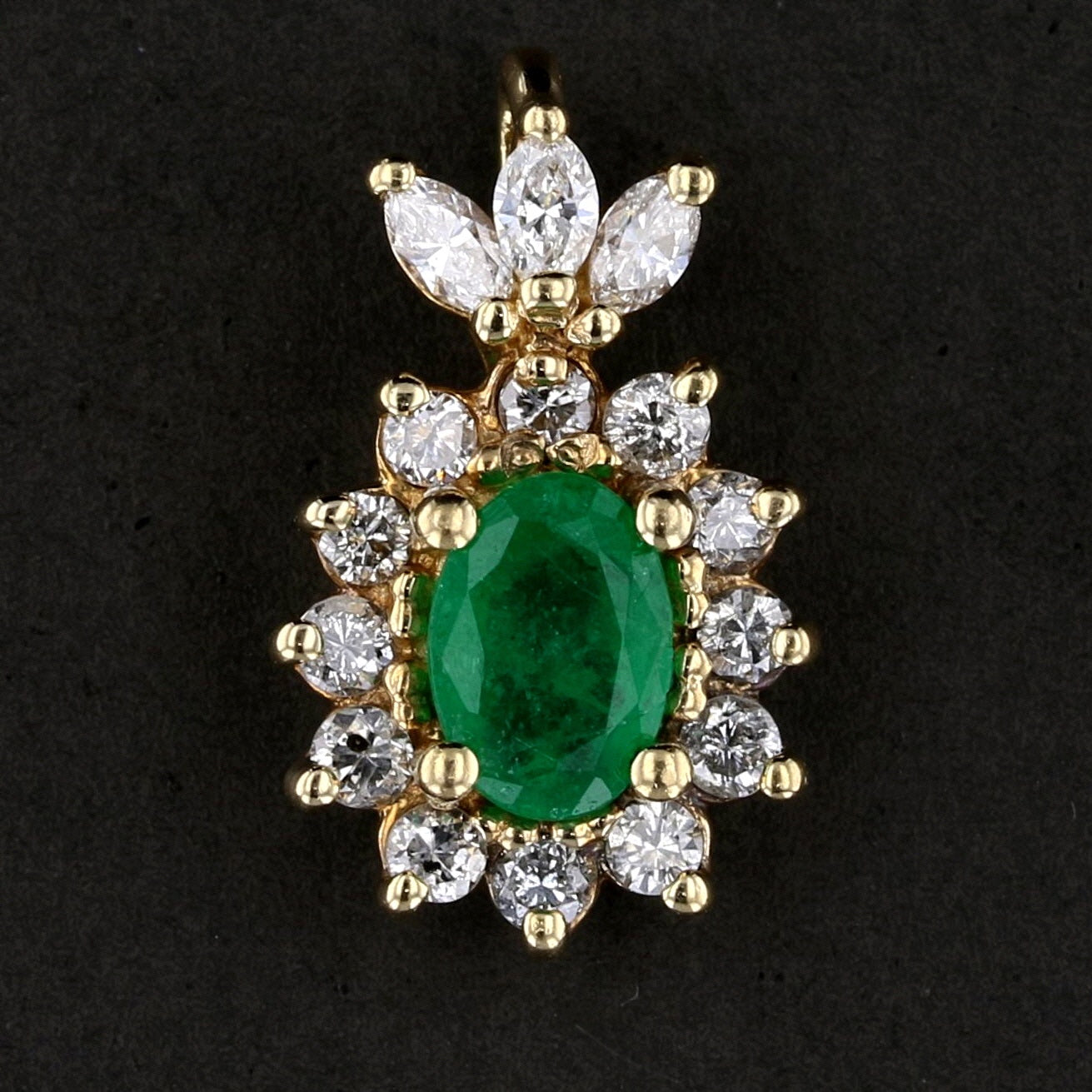 14K Yellow Gold Oval Emerald and Diamond Pendant