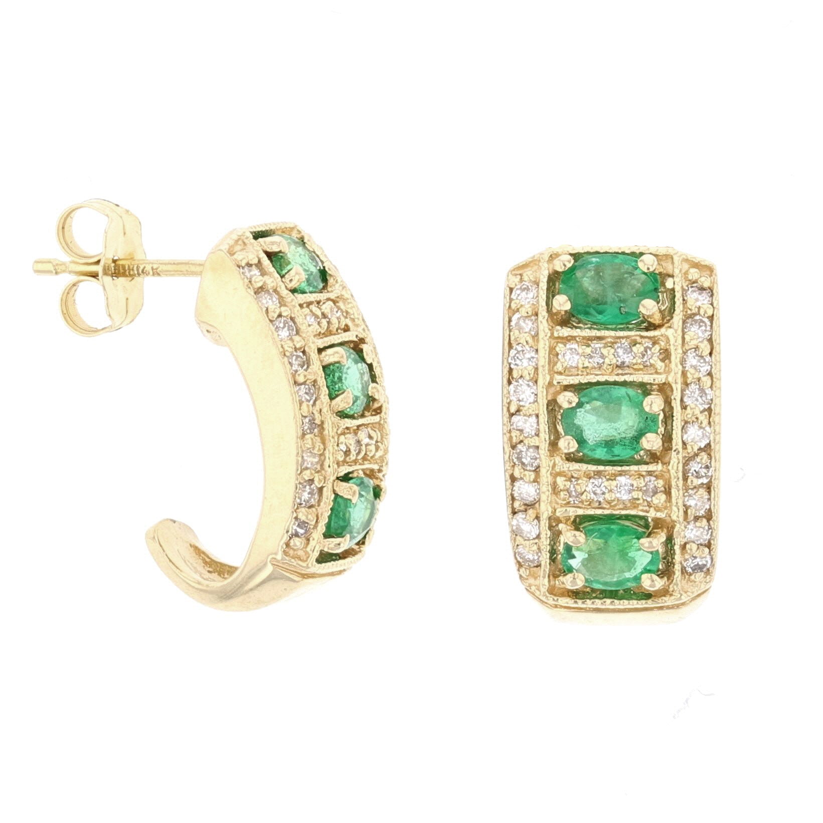 Yellow Gold Oval Cut Emerald Diamond Earrings