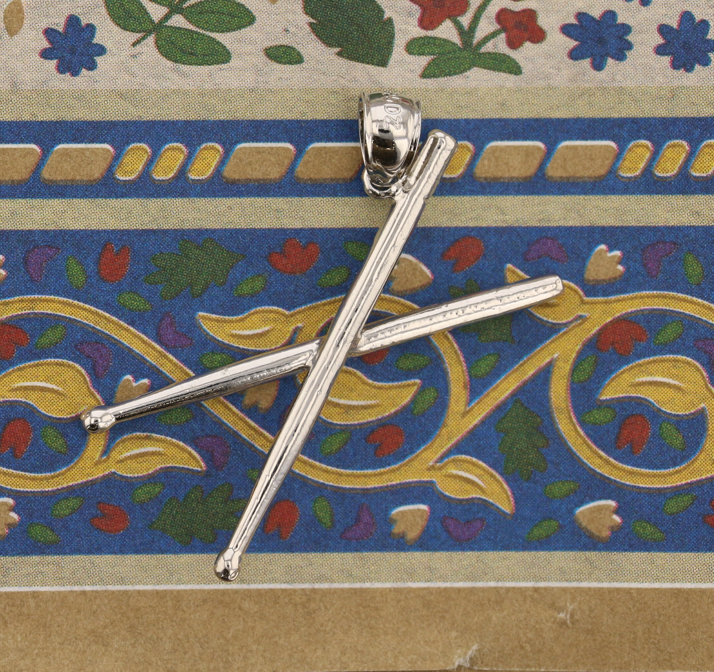 Description: This X Position Drum Stick 3D Sterling Silver Charm/Pendant is perfect for drummers and music lovers alike. Made of high-quality .925 sterling silver, this pendant is crafted in a 3D design to resemble a drumstick in an X position. Heavily coated with rhodium, this piece shines brightly and will remain shiny for years to come without needing any polishing.