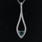 Add a touch of timeless sophistication with this Alexandrite and Diamond necklace, expertly crafted in 14K white gold. Weighing 1.6 grams, this lightweight yet luxurious necklace features a 0.25-carat triangle-cut blue Alexandrite, celebrated for its enchanting brilliance. Framing the Alexandrite are 30 dazzling round diamonds, totaling 0.15 carats, adding the perfect sparkle to this elegant design. Whether worn for a special occasion or as an everyday statement of class, this necklace is a unique and sophisticated addition to your collection.