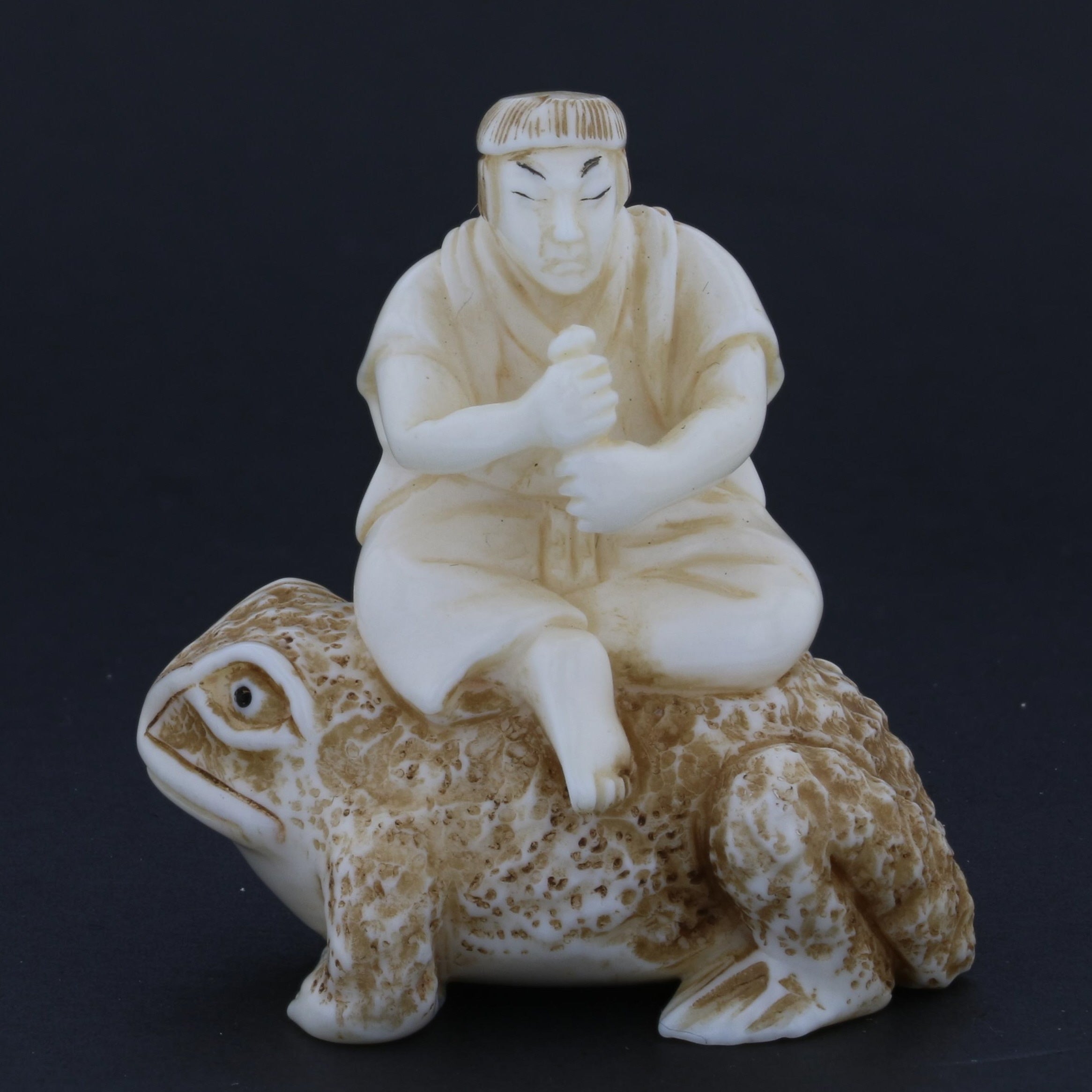 Antique Netsuke Carving – Man Riding a Toad