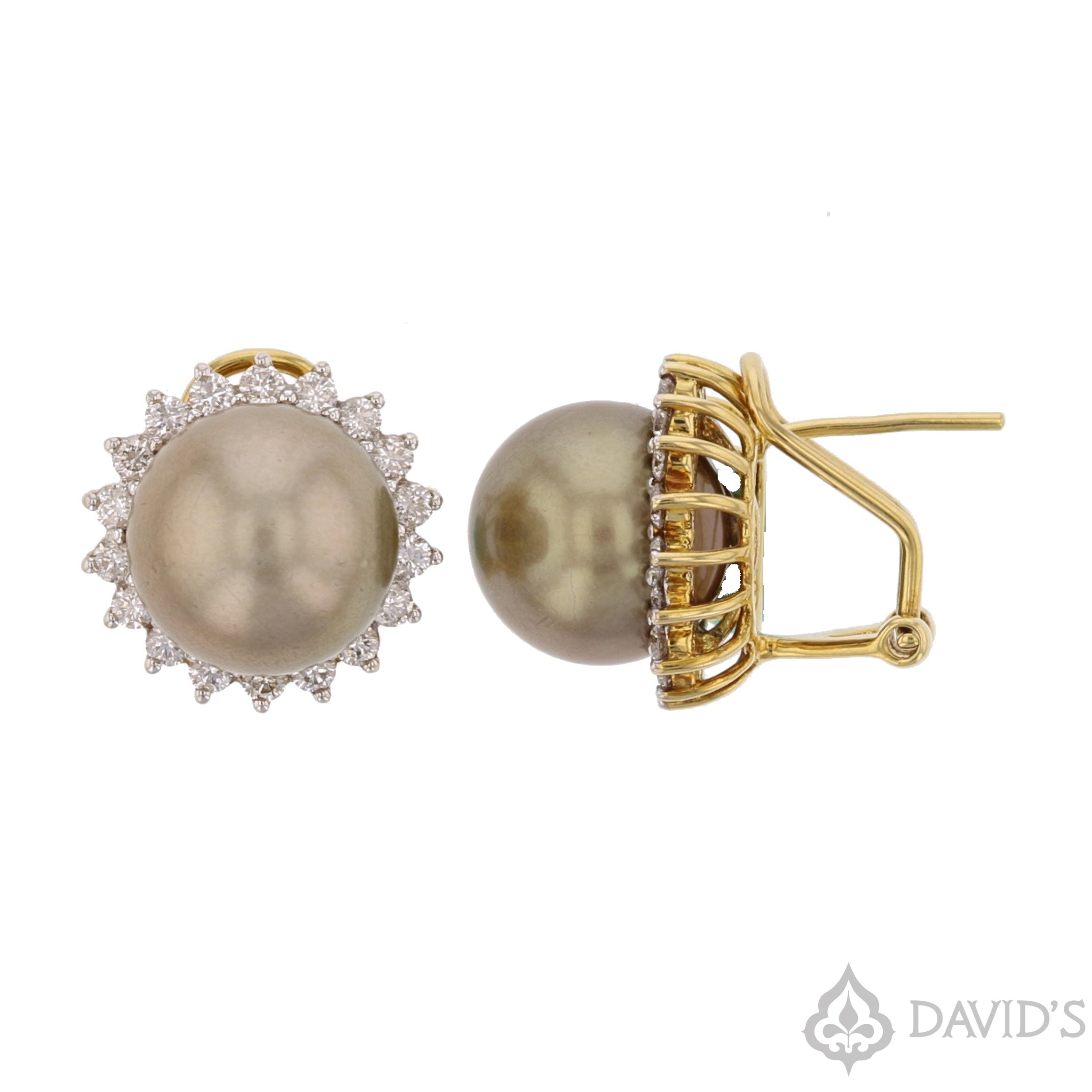 18Kt YG Tahitian Pearl & Diamond Earrings