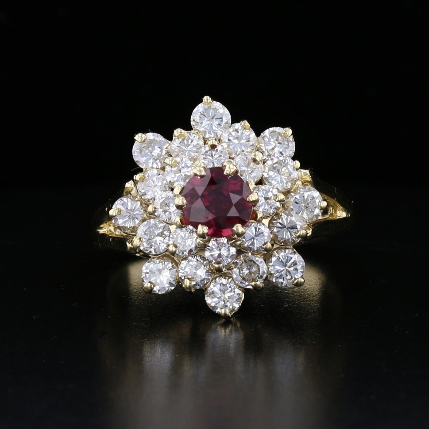 Vintage 14K Yellow Gold Ruby and Diamond Ring