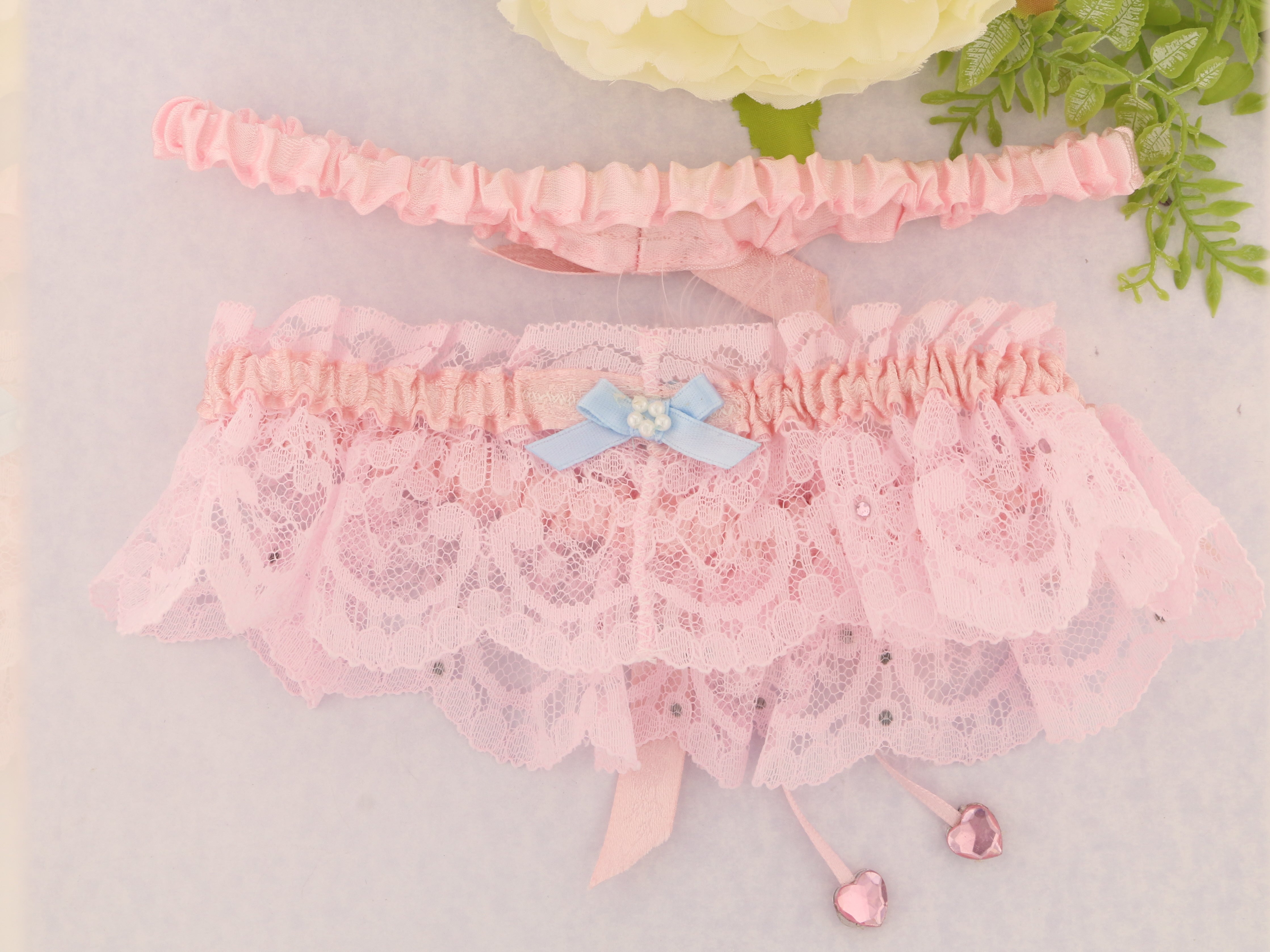 Lovers Knot Crystal Pink Nottingham Lace Bridal Garter