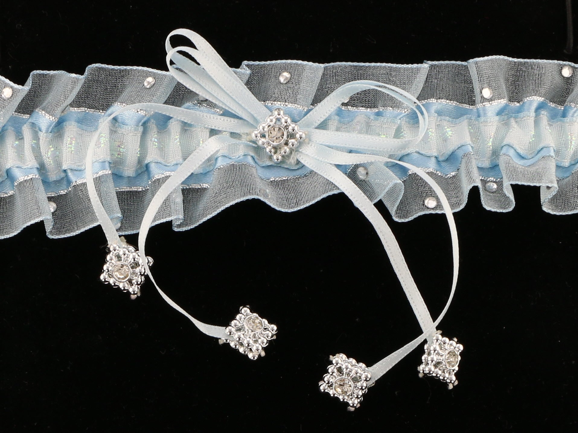 Something Blue' Voile Garter with Silver Trim | Handmade in England