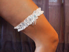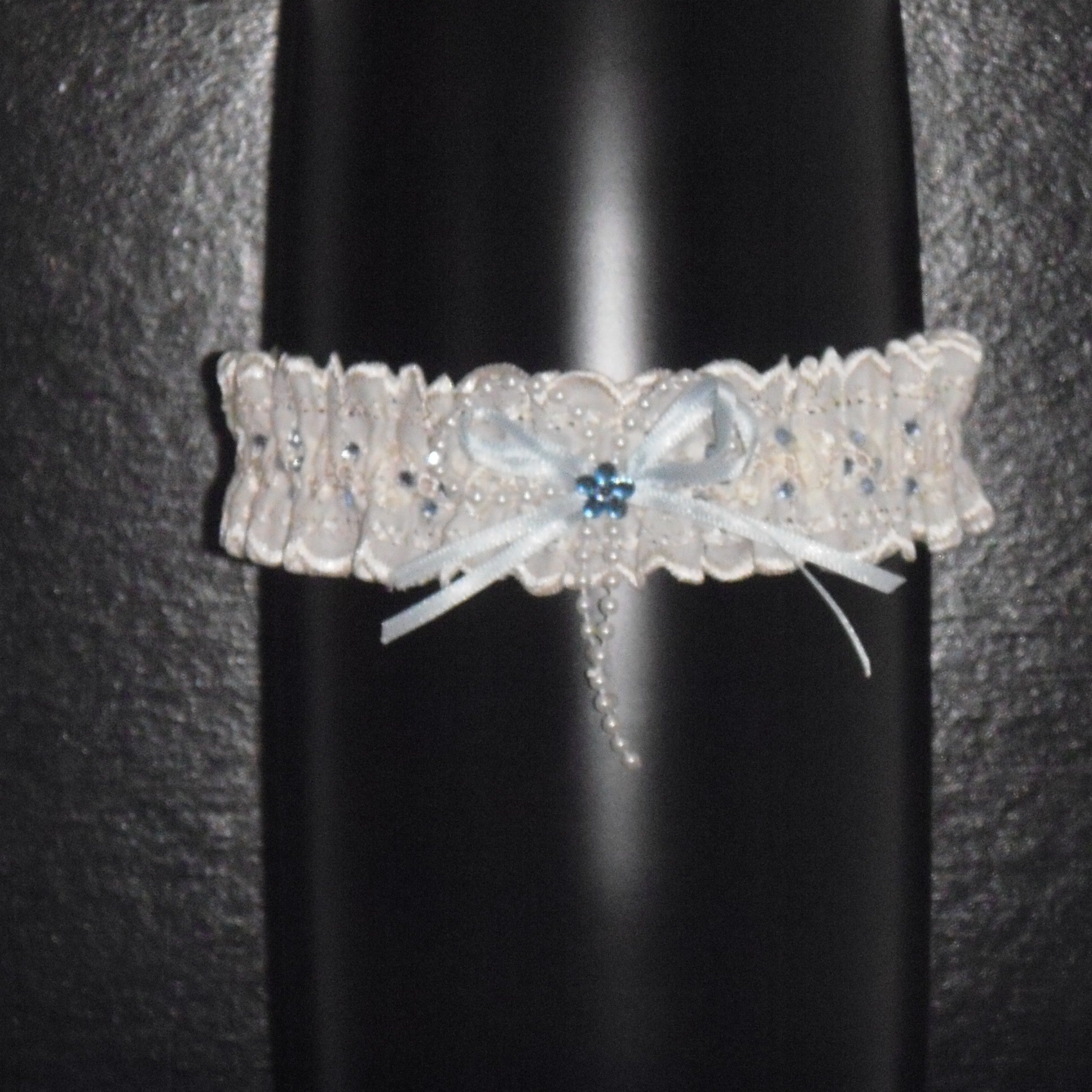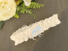 Sophisticated Elegance: Delicate Ivory Wedding Garter with Blue Satin Bow