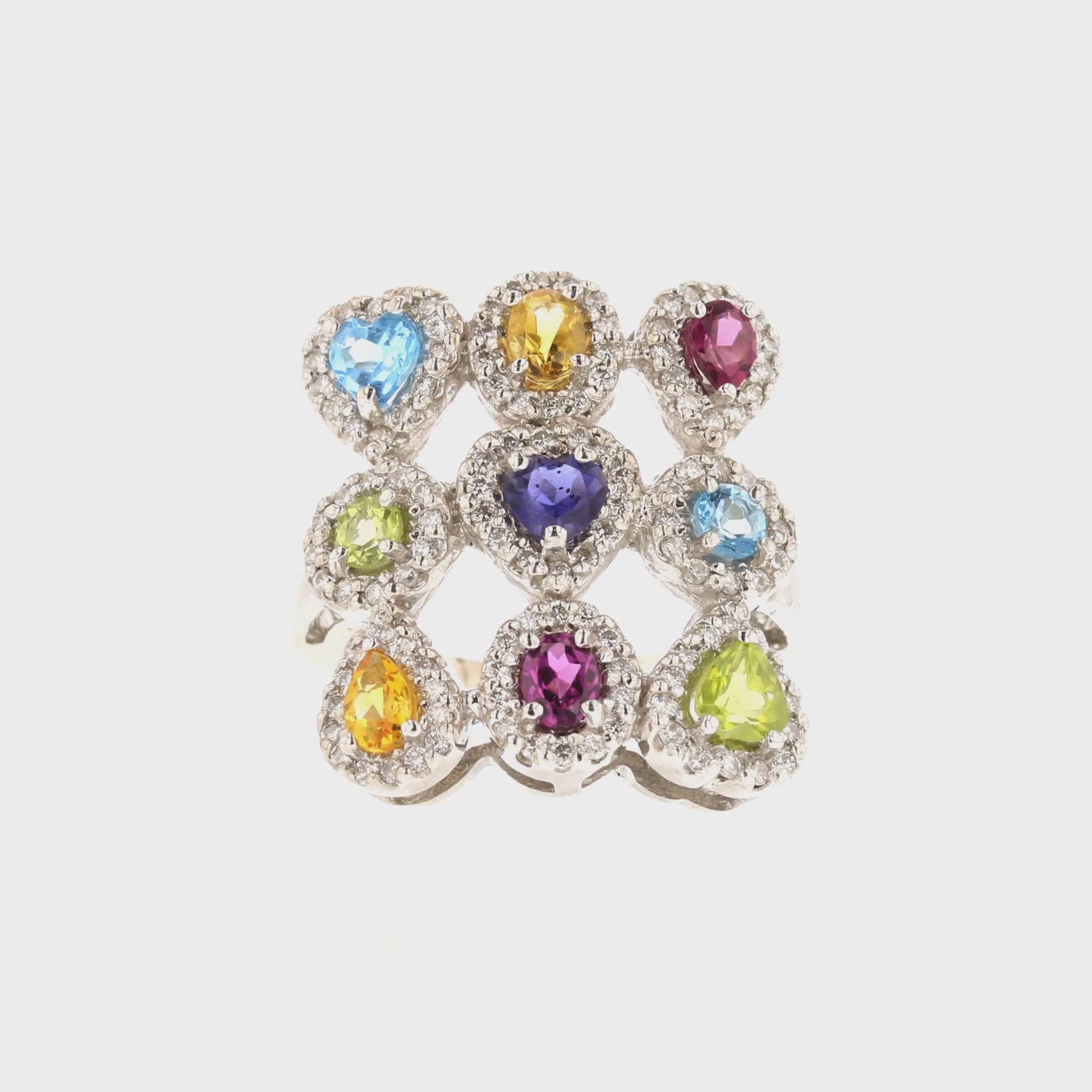Description: This beautiful ring features an array of different stones set in 14K White Gold . The ring has a total weight of 9.3 grams and is available in size 6.75. With an item code of 889109, this elegant ring is perfect for any occasion.