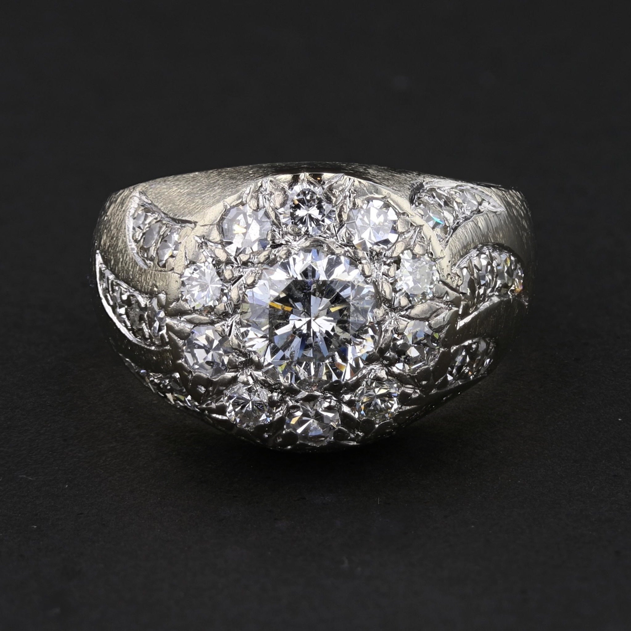 Revel in the timeless elegance of this Vintage 14K White Gold Diamond Ring. With a striking 0.98 carat round-cut diamond at the center and a total weight of 12.08 grams, this ring exudes vintage charm and sophistication, making it a perfect symbol of your love.
