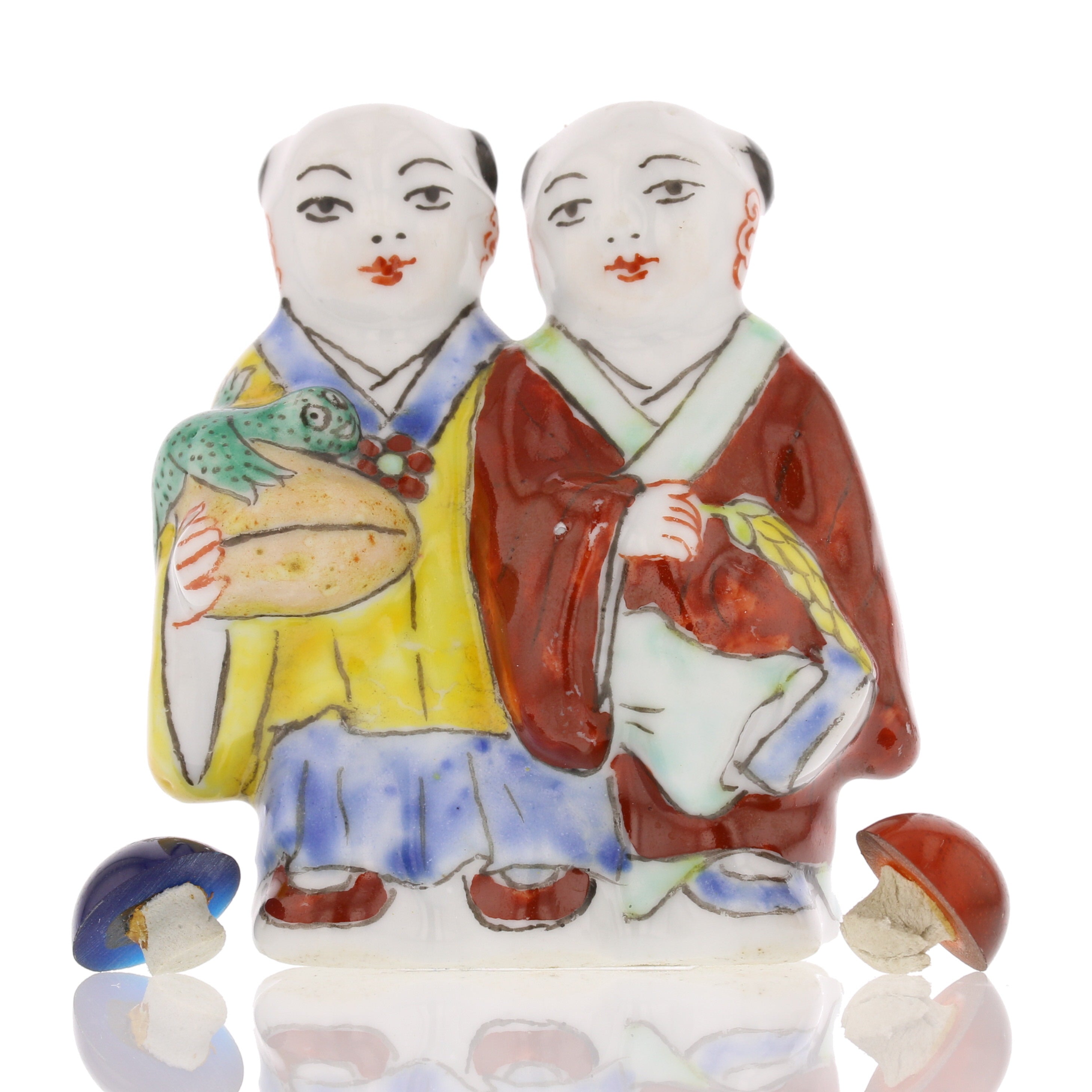 Discover the artistry of traditional Chinese craftsmanship with this Antique Chinese Figurine Snuff Bottle. Featuring two beautifully painted figures in vibrant colors, this hand-painted piece exudes charm and cultural significance. Made from fine porcelain, this unique bottle doubles as a collectible and a decorative item. As an antique, condition and details vary—please review all photos carefully to appreciate its craftsmanship and character.