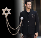 Make a bold statement with this Star of David Brooch Lapel Pin. Crafted in silver-colored base metal, this exquisite pin doubles as a brooch, offering versatility and style. Its intricate design and sparkling details make it a must-have accessory for any occasion. A hot haute piece that effortlessly elevates your ensemble.
